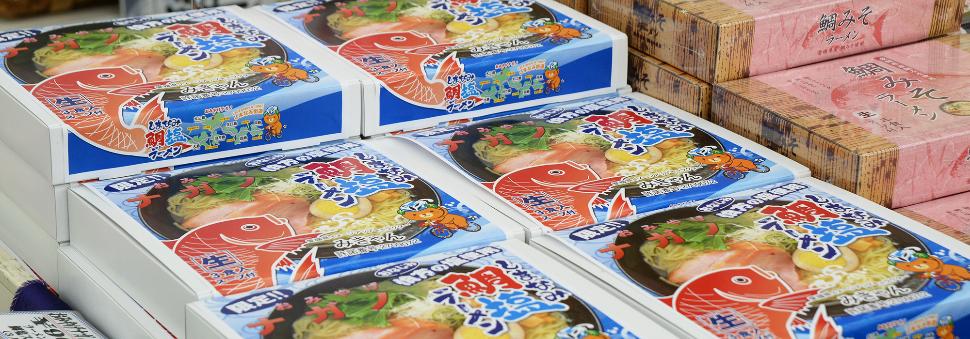 瀬戸内海といえばやっぱり鯛! 上品な鯛のだしと、おなじみの「伯方の塩」を使った贅沢なラーメン。鯛の旨味があとを引きます。